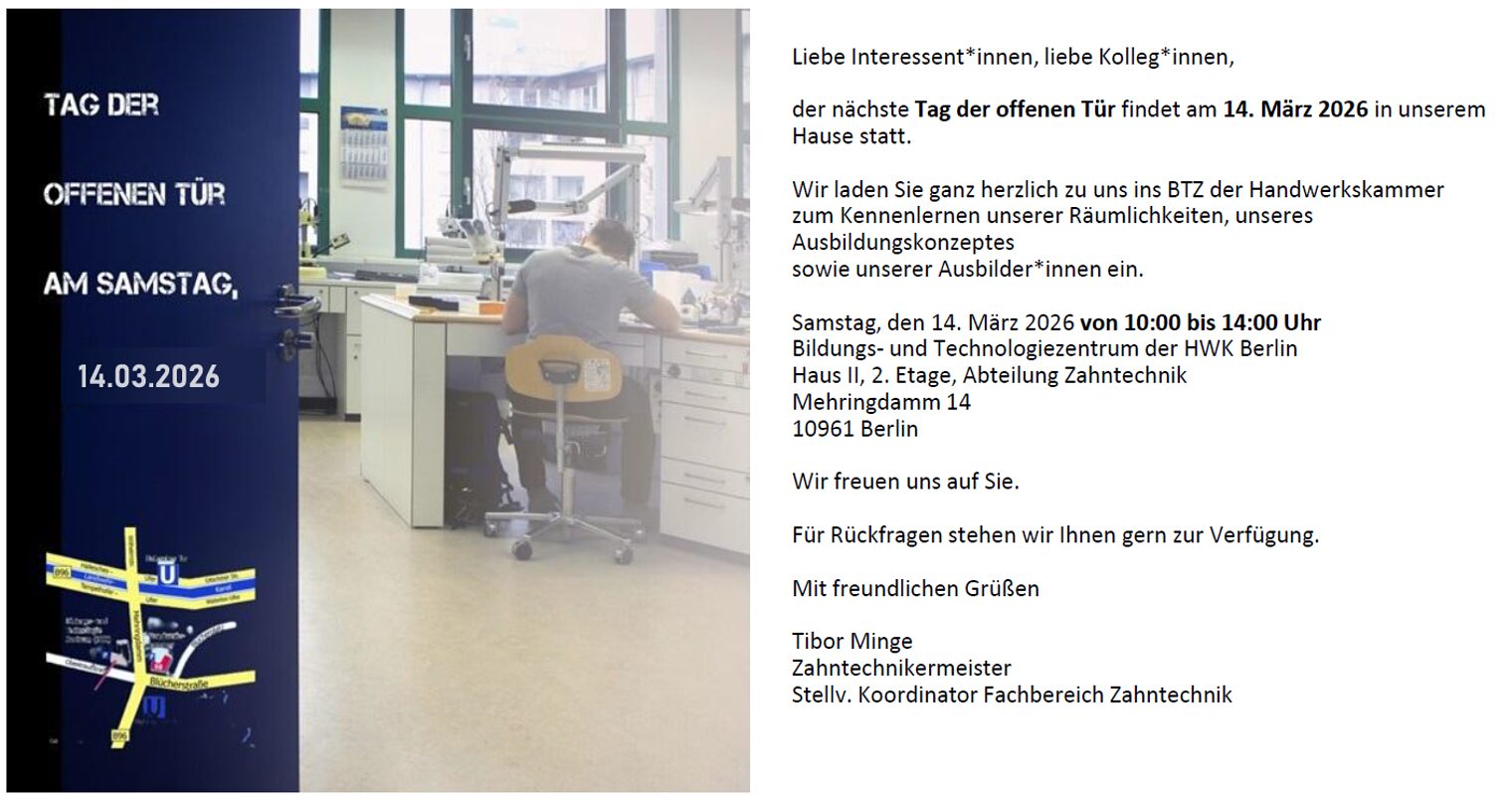 Ob der Gestalterpreis im Tischlerhandwerk, die Herbstfortbildung der Zahntechnik oder die Digitalisierungs- und Nachhaltigkeitstage in der Elektrotechnik (DNE), in den Bildungszentren der Handwerkskammer Berlin finden regelmäßig informative Veranstaltungen statt.